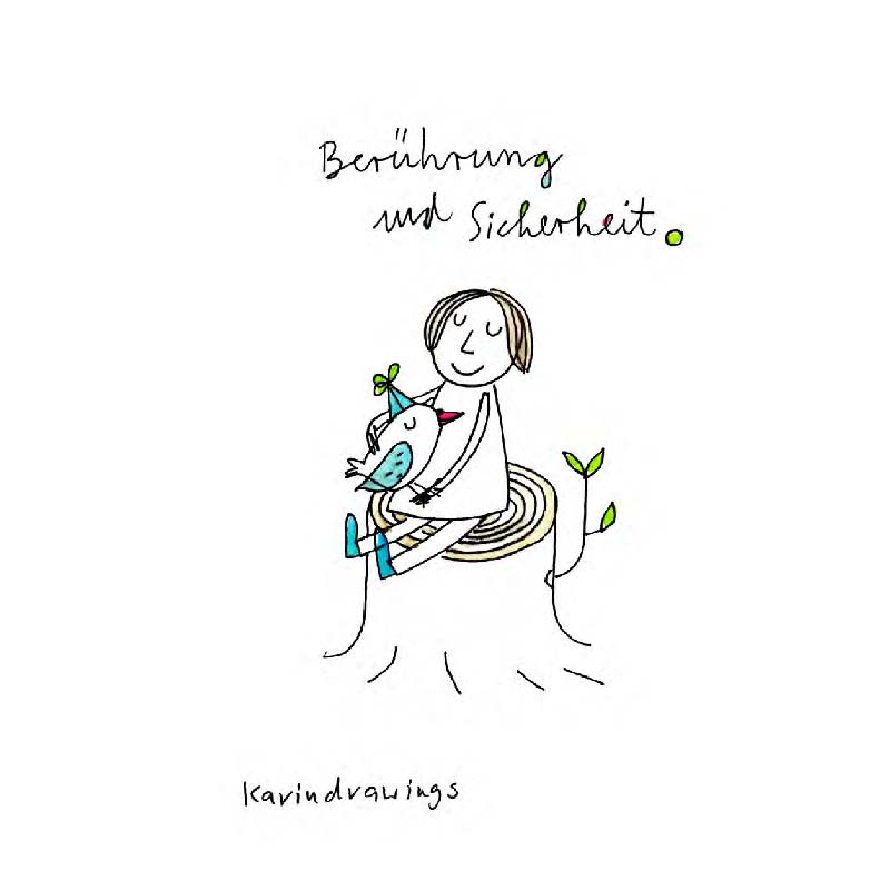 Eine besondere Künstlerin, deren Zeichnungen mich nun schon viele Jahre begleiten ist Karin Clauß. Die bezaubernde Zeichnung „Berührung und Sicherheit“ stammt von ihr und berührt mich immer wieder sehr: